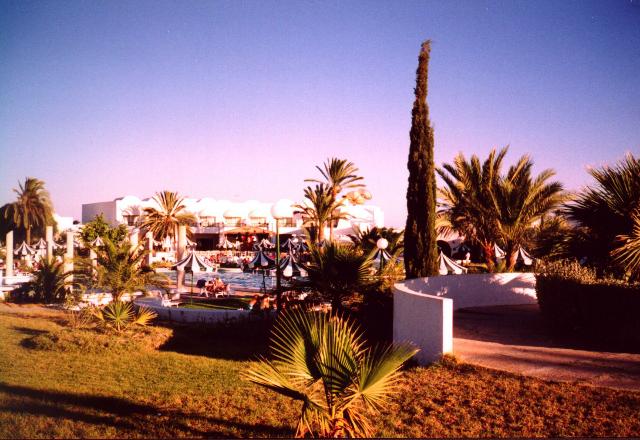 As soon as we stepped out into the open, we were greeted by a heat wave. It was particularly intense for us, because we had had nothing but rain in Germany that summer. A short bus-ride from the plane's parking-lot to the airport-building later, we went through immigration. This took quite some time - as did the collection of our luggage but going out of the airport we were met by our agency's representative. This guy - a local - always seemed to be in a bit of a rush (which is unusual for Tunisians) but he took care of our transfer and soon we were sitting in a bus heading for our hotel.