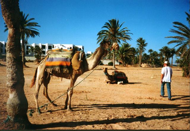 This was my first trip to Africa and as we approached the Tunisian coast all my expectations were fulfilled. The view from the plane's window was just as I had anticipated - a lot of sand with palm-trees and olive-groves, a sand-desert and a sparse sprinkling of houses. About 2 1/2 hours after leaving Frankfurt our plane was swooping down towards the island of Djerba and after a fairly good landing we and a couple of hundred other tourists disembarked from the Airbus. I, for one, was very glad to be out of it - not because I don't like flying (quite the opposite) but because I probably had the most annoying kids in the world sitting behind me. I hope those brats were bitten by a dromedary!