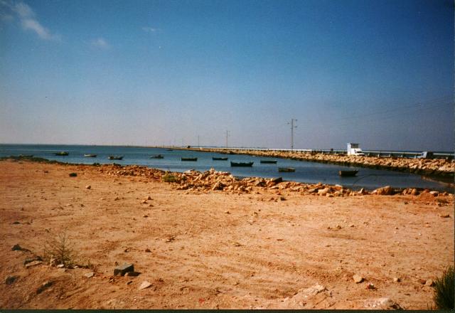 There were a number of trips on offer from our agency and we made our second week on the island our excursion-week. On Monday I had been to Houmt Souk and on Tuesday Dirk and I went on a coach-trip round the island. First we visited El Kantera which is an old Roman dam - the only land-connection between Djerba and mainland Tunisia. The dam can be used all throughout the year. There is a road leading across it alongside of which runs the aforementioned freshwater-pipeline. The dam is approximately seven kilometres long.