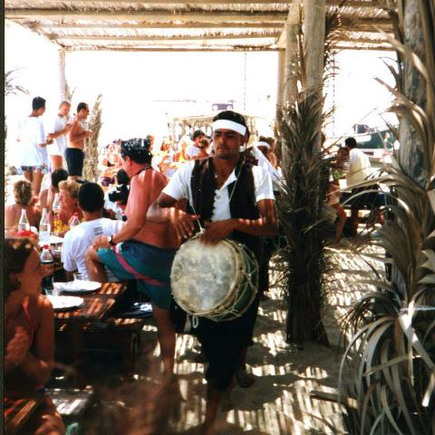 Breakfast and supper in the hotel consist of a buffet which offers a fairly good choice of international and local cuisine. The main clientele of this hotel is French which accounts for the free table-wine which is served. However, it doesn't account for the very poor quality of said wine. All in all one can say that the food in the hotel was OK but nothing to write home about. After supper there was always a show which was put on by the animateurs. The first evening there were get-to-know-each-other games and such. There was a pass-the-hat dancing competition where the couple wearing the hat when the music stopped was eliminated. I won second prize with a Belgian girl called Audrey. A big burly Russian guy - who was to appear again and again during the course of our holidays - took first prize. After the show there was always the "village-dance" - one of the these group-dances which is supposed to strengthen the communal spirit and form some kind of relationship between the guests and the hotel. I boycotted it but Dirk was happy enough to take part - I am not a fan of mass-organised entertainment.